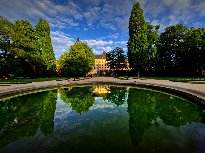 Fotokurs digitale Schwarzweißfotografie an der Orangerie und moderner Architektur in Fulda
